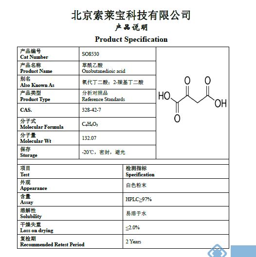 产品名称: 草酰乙酸标准品
